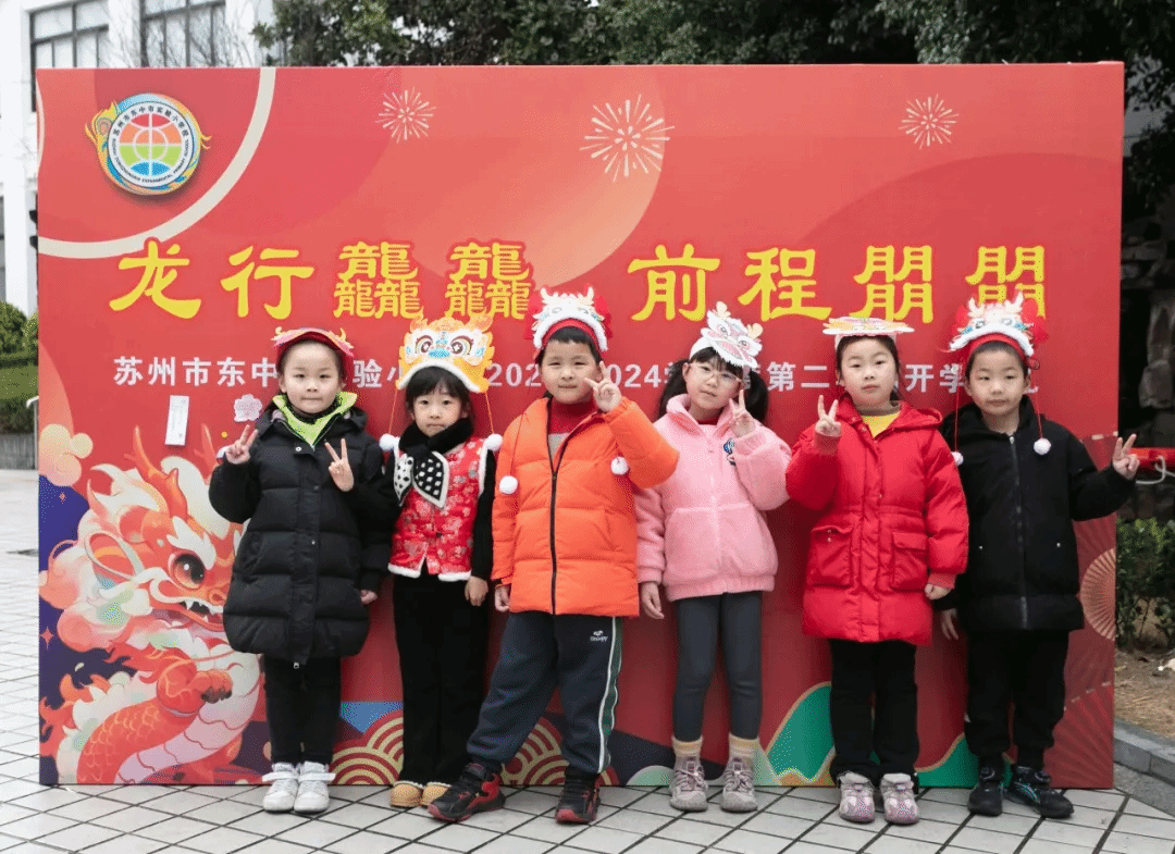 2月20日上午,苏州市东中市实验小学校迎来了元气满满的同学们,低年级的同学们头戴小龙帽进入校园,中高年级的同学们将自制的灯谜卡贴在大展板上,用满满的喜气为新学期带来红红火火的福气。