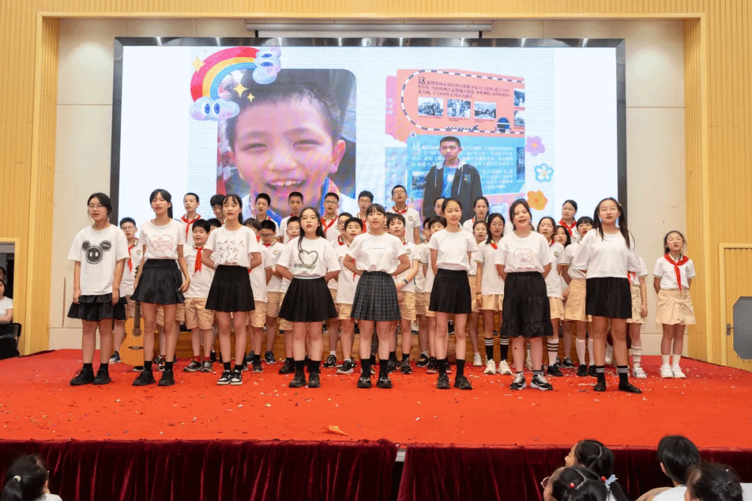 毕业不是休止符,而是美妙的乐段,六(1)班的《一路生花》是对明天的呼唤,希望你们许过的愿望一路生花。六(2)班唱起《让我们好好道个别吧》——挥挥手道别,我的伙伴,不说再见,就一定会再见。六(3)班的《稻香》回荡在现场,每一句歌词都是孩子们对美好未来的找寻和呼唤——笑一个吧,快乐是人生的意义。时光流转,如风的少年,飞在天地间,归来的时候,一定绽放着鲜艳的色彩。六(4)班带来的《送给少年的碎碎念》温暖着人心。